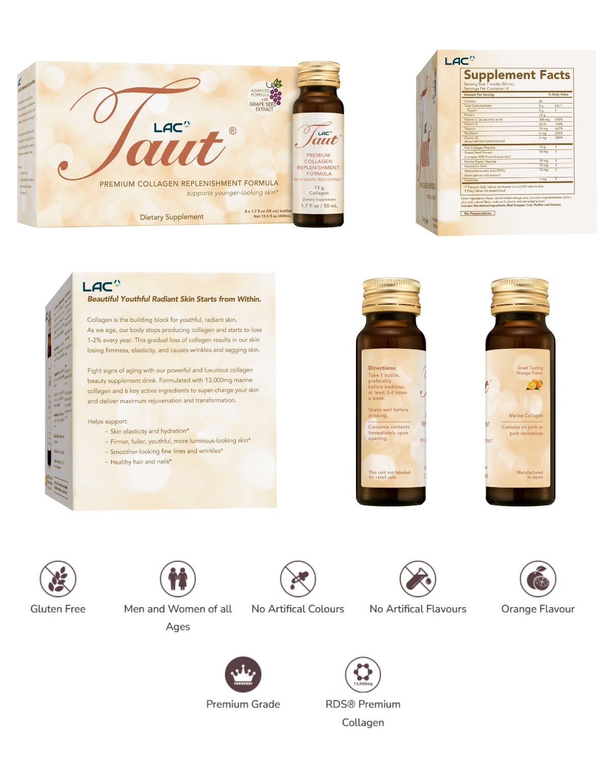 LAC Taut® Rejuvenate+ Premium Collagen 13,000mg plus Placenta & AG Complex (50ml x 8 bottles)