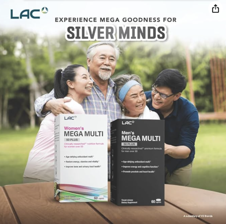 All these would help you maintain your health during old age and even improve your mental and physical state. Stay healthy and keep rocking after 50, add LAC Men’s Mega Multi 50 Plus to your regimen today.