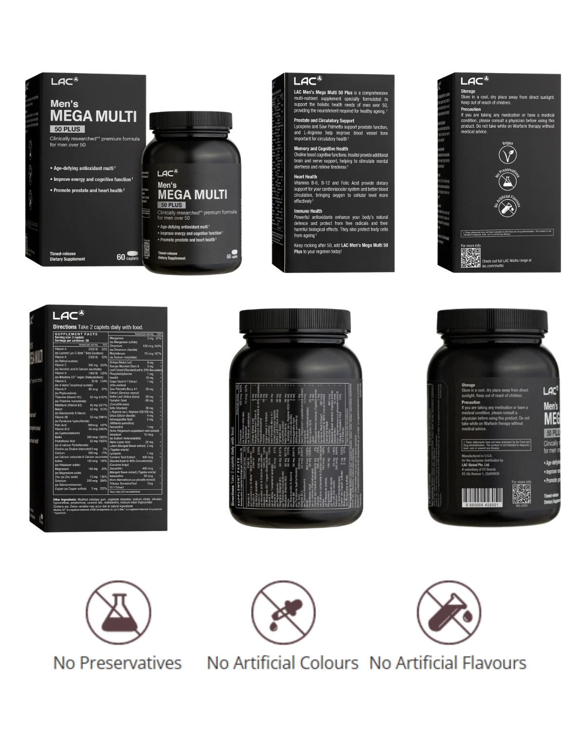 LAC Men’s Mega Multi 50 Plus is a comprehensive multi-nutrient supplement, specially formulated to support the holistic health and provide the nourishment needs of men over 50.