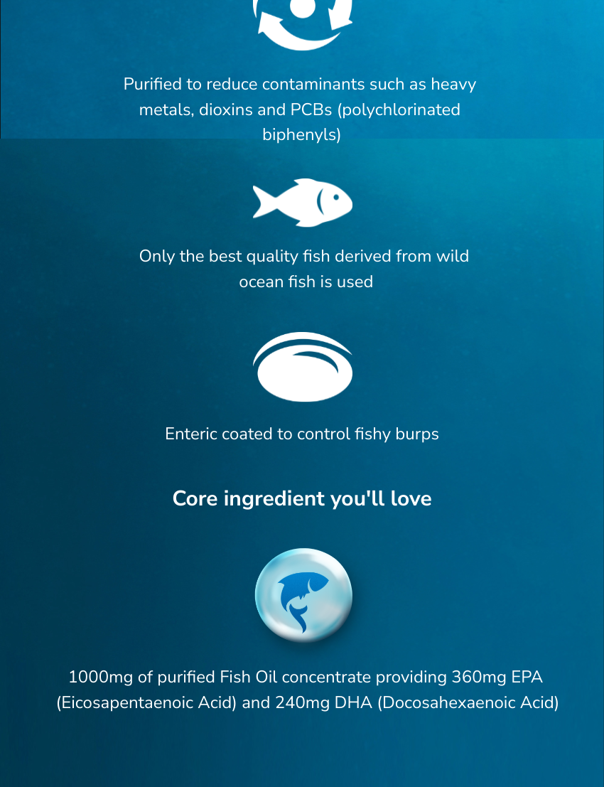 • Purified to reduce contaminants such as heavy metals, dioxins and PCBs