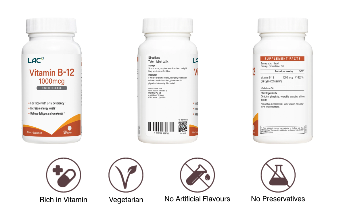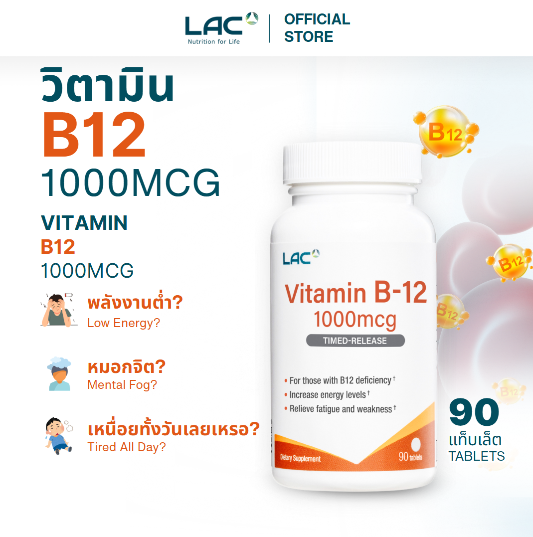 วิตามินบี12 1000 ไมโครกรัม / 90 เม็ด – สูตรปลดปล่อยช้า ใช้ได้ 3 เดือน